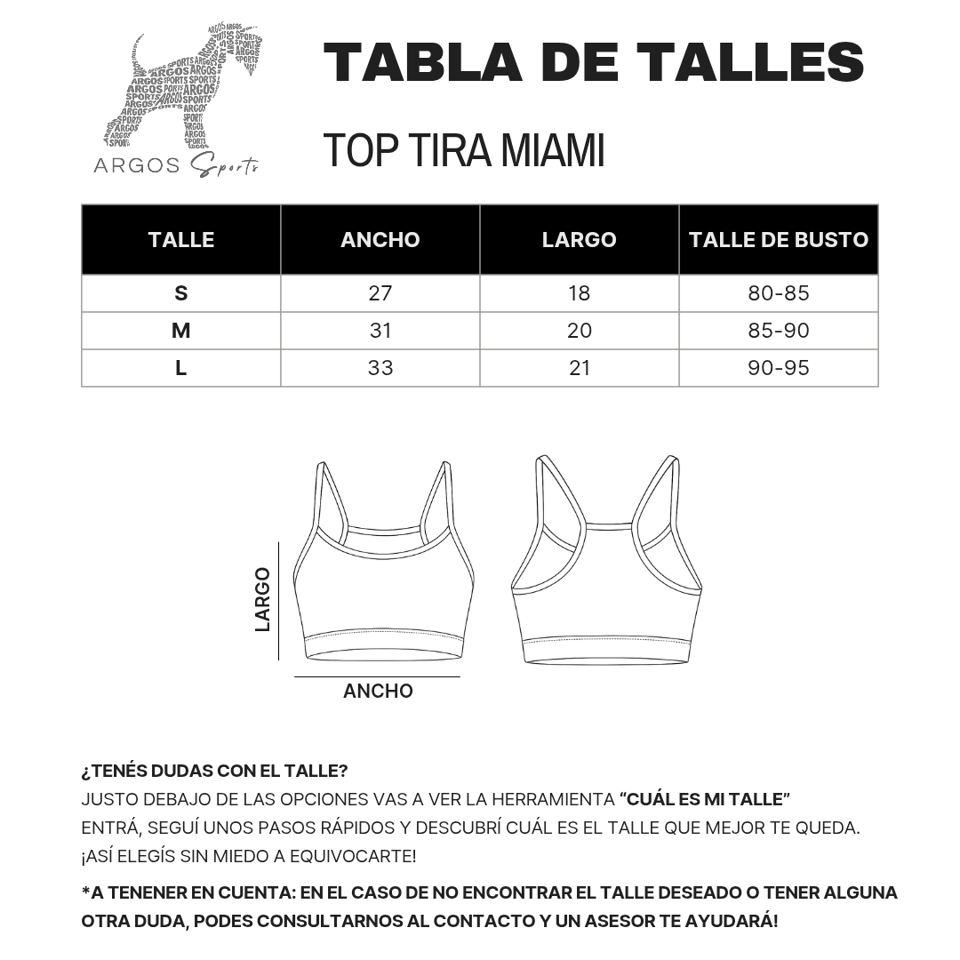 El Top Miami negro está confeccionado en Lycra de alta calidad, que se adapta al cuerpo con suavidad y firmeza. Su diseño con tiras finas aporta un toque delicado y moderno, ideal para entrenamientos livianos o para usar como parte de un look urbano.